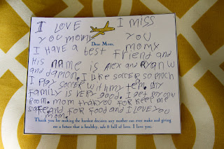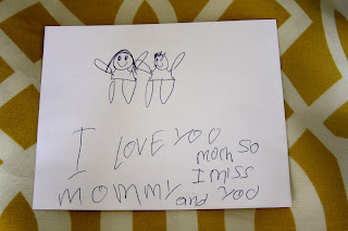 It's times like this that I wish I knew graphic design. How easy it it would be to make something if I did. But since I don't, I simply made this little card while he brainstormed what he'd tell her.